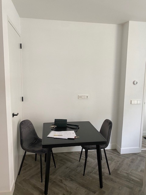 Binnenkomst begane grond middel eigen entree. Woonkamer met open nieuwe keuken welke is voorzien van alle benodigde inbouwapparatuur. Semi afgesloten slaapkamer. Badkamer welke voorzien is van inloopdouche, wastafel en toilet. Werkelijk alles is hier zeer netjes en met oog voor details afgewerkt. Er is een gedeelde unit waar wasmachines/drogers staan. Deze worden met maximaal 2 appartementen gedeeld en gebruik is inclusief in huurprijs.